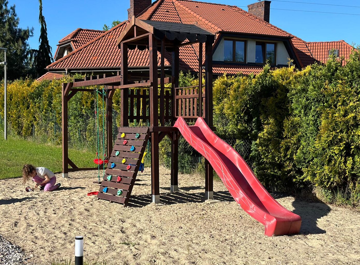 Przestronny plac zabaw z wieloma atrakcjami dla Twoich dzieci.