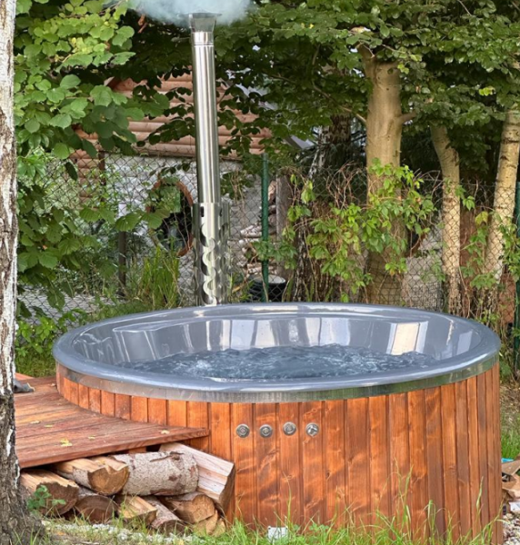 Drewniana bania z funkcją jacuzzi.